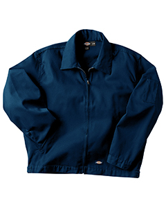 "65% polyester, 35% cotton vat dyed twill; Slash front welt pockets; Heavy duty brass zipper front closure; Pencil pocket on left sleeve; Industrial laundry friendly; Dickies logo label on left hem; Adjustable tab at waistband;"