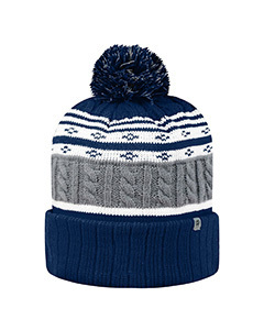 100% acrylic; One size fits most; White and Grey accent colors; 2-color pom