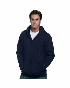 9.5 oz 80% heavyweight preshrunk cotton/20% polyester full zip hooded sweatshirt; Made in the USA; Double lined hood with matching drawstring; Front pouch pockets; Rib knit cuffs and waistband with Lycra®.;