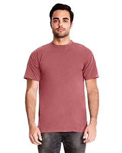 5.5 oz., 100% combed ring-spun jersey; 24 Singles; Garment Dyed; Short Sleeve Crew; 1x1 ribbed collar; Tear-away label;