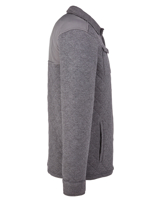 10 oz., 70/30 polyester cotton quilted jersey; Polyester filling; Full snap placket with 7 metal snaps; Self fabric collar; Set-on chest pockets, welt side pockets; Self fabric cuffs with snap; Tear away label