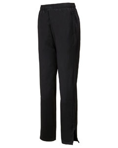 100% polyester matte heavyweight brushed tricot; Covered elastic waistband with inside drawcord; Side seam pockets; Back yoke; Zipper on outside lower leg; Double-needle hemmed bottom; Machine washable;