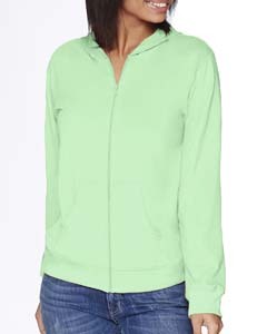 60% combed ringspun cotton/40% polyester sueded jersey; 4.3 oz.; 32 singles; 1x1 ribbed cuffs and waistband; Dyed-to-match YKK zipper; Unlined hood; Unisex fit;