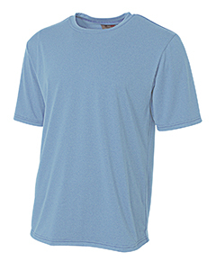 100% polyester heather tee, 4.2 oz. per square yard; Odor resistant and stain release fabric for easy care; Moisture management for all season comfort; Neck seam cover-stitched for extra durability; Tag-free neck;