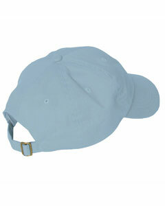 100% brushed cotton six panel twill cap; Unstructured; Pre-curved bill; Sewn eyelets; Adjustable fabric back strap with brass slider and hidden pocket tucked in band.;