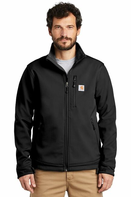 The closest thing to wearing an armadillo this heavyweight soft shell keeps the elements at bay while keeping you warm and dry. 13.9-ounce 90/10 nylon/spandex shell bonded to a water-resistant film insert and a 100% polyester fleece backing Rain Defender durable water repellent Wind Fighter technology tames wind Rugged Flex technology for ease of movement Reverse coil center-front zipper with chin guard Zip-through cadet collar Left chest pocket with reverse coil zipper Zippered hand pockets Interior pockets: large document pocket with hook and loop closure and two open pockets Hook and loop adjustable cuffs Adjustable drawcord drop tail hem Carhartt-strong triple-stitched main seams Carhartt label sewn on chest pocket