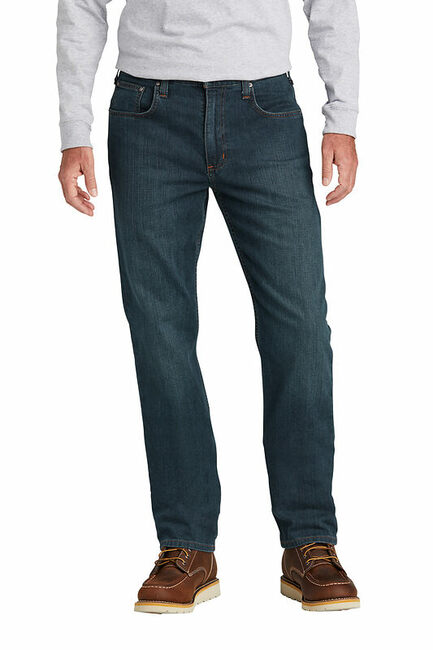 For double shifts or 14-hour days these jeans can stand up to almost any job. They're made of Carhartt's most-durable abrasion-resistant denim with Rugged Flex technology for comfortable movement.12-ounce 85/14/1 cotton/poly/spandex denimRugged Flex durable stretch technology for ease of movementSits slightly below the waistComfortable fit through the seat and thigh with more room to moveStronger sewn-on seam belt loopsStraight leg opening fits over bootsCarhartt label sewn on right rear pocketRelaxed fit