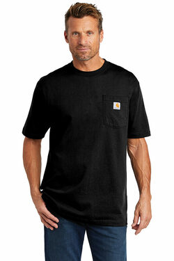 Carhartt's bestselling no-quit original work shirt. A classic for 25 years. Durable 6.75-ounce 100% cotton jersey knit 90/10 cotton/poly (Heather Grey) 60/40 cotton/poly (Dark Cobalt Blue Heather) Rib knit crewneck Tagless neck label Left chest pocket Side-seamed construction minimizes twisting Carhartt label sewn on left chest pocket Original fit