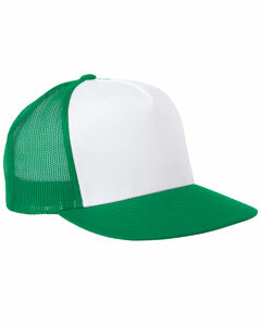 47% cotton/25% polyester/28% nylon classic two tone trucker cap; 4” crown structured with buckram backing; White front solid panel; Four mesh panels; Eight rows of stitching on flat visor; Matching under-visor; Plastic adjustable closure.;