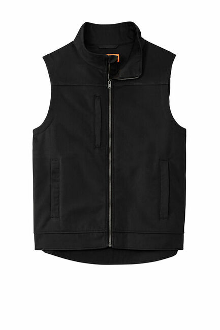 Soft shell technology meets durable duck cloth in this hardworking water-resistant vest that has an ultra-warm fleece interior. 100% cotton canvas shell with a DWR finish bonded to a water-resistant film insert and 100% polyester microfleece lining Metal front zipper Zippered chest pocket Zippered hand pockets Three interior pockets