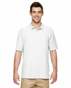 "65% polyester, 35% preshrunk cotton double piqué; DryBlend® technology delivers moisture-wicking properties; sideseamed ; contoured welt collar; heat transfer label; double-needle sleeve and bottom hem; clean finished placket with reinforced bottom box; three dyed-to-match buttons;"
