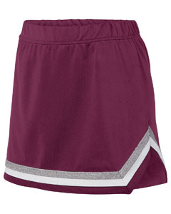 90% polyester, 10% spandex knit; Girls' fit; Pad print label; Flat front waistband with covered elastic at back; Two darts at back of skirt for more custom fit; Left side seam V-notch at hem;