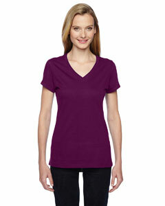 "100% cotton; breathable and lightweight fabric with superior softness ; tear away label; double-needle hemmed sleeves and bottom; Athletic Heather is 90% cotton, 10% polyester; contemporary junior silhouette with mitered V-neck; self-fabric collar with single-needle coverstitching; feminine cap sleeves; sideseamed and slightly contoured for a flattering fit;"