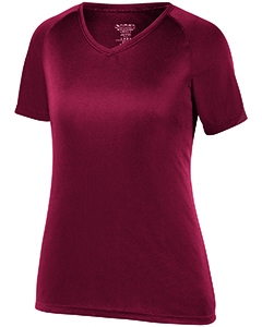 100% polyester wicking knit with true hue technology; True hue technology prevents dye migration; Wicks moiusture away from the body; Updated ladies' fit has bigger chest for added comfort; Raglan sleeves provide greater range of motion;