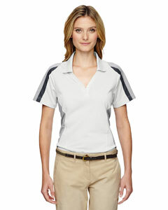 "4 oz., 100% polyester tricot; snag protection; moisture-wicking performance; anti-microbial; UV protection performance; heat-sealed label; three-button placket; contrast shoulder inserts; Y-neck with matching flat knit collar;"