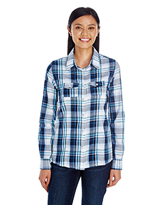 Ladies' Long-Sleeve Plaid Pattern Woven
