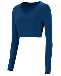 90% polyester, 10% spandex lightweight knit; Wicks moisture away from the body; Ladies' fit; Pad print label; V-neck collar; Modified raglan to prevent shoulder seems from showing under shell; Ladies' sizes are a midriff style with covered elastic;