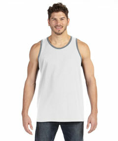 "4.5 oz., preshrunk 100% combed ringspun cotton ; 30 singles; features a TearAway label; double-needle bottom hem; Oeko-Tex® Standard 100 Certified; Heather Grey is 90/10 cotton/poly; Heather colors are 60/40 poly/cotton; semi-fitted; bound-on self-trim neck and armhole;"