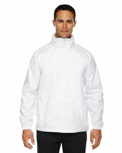 "100% polyester taffeta in sleeves ; 2,000 mm waterproofness/2,000 g breathability; SHELL: 100% polyester variegated ripstop, 3.5 oz./yd2/117 gsm; LINING: 100% fine mesh polyester at hood and body; fully seam-sealed waterproof shell; storm flap with snap closure at bottomand chin guard; center front autolock zipper with reflective toggle; roll-away adjustable hood; underarm and back vent system for added breathability; lower front concealed zippered pockets with reflective toggles; elasticized cuffs; adjustable shockcord at hood and drop back hem; reflective piping at shoulder yoke and center back yoke;"