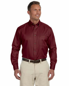"55% cotton, 45% polyester twill with stain-release; Wrinkle-resistant; Extra stitching at seams and buttons; Flat-felled seam finishing; Signature horn-style buttons with Harriton logo; Full back yoke and back pleat; Two-button adjustable cuffs; Button-down collar; Left-chest pocket;"