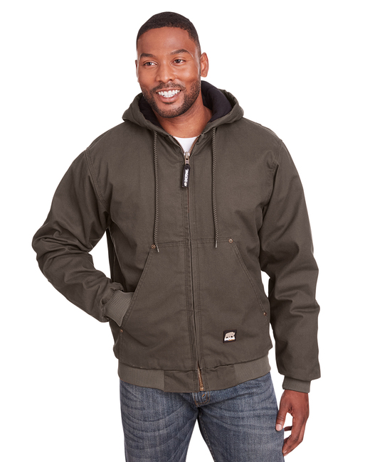 12 oz., super-duty cotton duck; Heavyweight quilt-lined taffeta liner; Triple-needle stitched main seam; Heavy-duty brass zipper; Three-piece insulated hood with drawstring; Pleated action back; Pleated elbows; Two front patch pockets; Three inside pockets