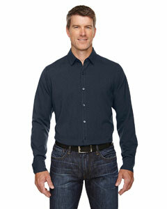 100% polyester mechanical stretch two-tone melange; 2.9 oz./yd2/97 gsm with moisture wicking performance; two-tone mélange fabric; hidden button-down collar; back yoke with side pleats; double-needle flat felled side and underarm seams; tailored adjustable cuffs with buttoned sleeve plackets;