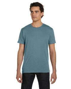 40's 100% organic cotton; 3.5 oz.; men's regular fit; low-impact fabric-dyed satin garment-washed; enzyme finished; set-in ribbed collar; set-in sleeves; sideseamed; blindstitching on sleeves and bottom hem;