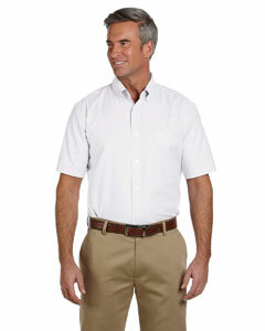 "65% cotton, 35% polyester with stain-release; Easy-care, wrinkle-resistant; Extra stitching at seams and buttons; Flat-felled seam finishing; Pearlized buttons with Harriton logo; Left-chest pocket; Button-down collar; Full back yoke and back pleat;"