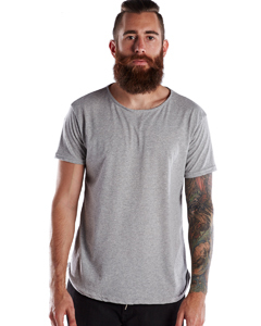 50% cotton, 50% polyester jersey ; 30 singles ; Fabric is made from Recover ® Recycled scraps; Modern open neck detail without collar; True to size young contemporary fit; 3/8" turnback neck with single needle; 5/8" turnback hem with double-needle stitching; Shoulder-to-shoulder neck taping; Looser cut with slightly rounded hem;