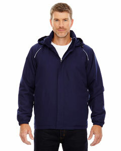 "INSULATION: 100 gsm in body and 60 gsm in sleeves; 100% polyester microfibre twill, 3.4 oz./yd2/115 gsm; LINING: 100% polyester brushed tricot in body; storm flap with snap closure at bottom; brushed tricot-lined collar and chin guard; centre front autolock zipper with reflective toggle; roll-away hood; elasticized cuffs; lower brushed tricot-lined concealed zippered pockets ; thermal retention shockcord at hood and drop back hem; audio port access through inside left pocket; reflective piping at shoulder yoke and centre back yoke;"