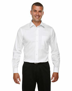 "3.5 oz., 53% cotton, 43% polyester, 4% lycra; Fine yarn count shirting; True Non-iron performance straight from the dryer; stain release finish; Active Fit; Patented pucker-free taped seams; Fused collar, cuffs, and placket; Split back seam with bias cut back yoke; Straight collar with built-in collar stays; adjustable Comfort Collar for up to an inch of stretch at neck; left-chest pocket; pearlized buttons;"