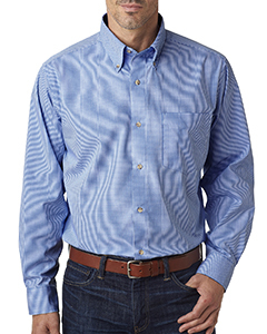 55% cotton 45% polyester ; Wrinkle-resistant; Stain & soil repellant; Chambray contrast in neckband & yoke; Patch chest pocket; Adjustable cuffs; Button-down collar; Lightweight; Micro-check pattern