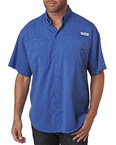 2.4 oz., 100% polyester ripstop fabric; Omni-Wick™; Quick-dry; Omni-Shade™; UPF 40 sun protection; Anti-microbial treatment protects this product from bacterial growth; Button-down collar; Vented; Columbia PFG logo patch on rod holder on left chest;