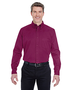 4.7 oz. 55% cotton, 45% polyester twill; Peached finish; Button-down collar; Dyed-to-match buttons; Left chest pocket;