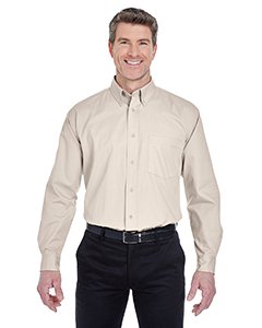 4.7 oz. 55% cotton, 45% polyester twill; Peached finish; Button-down collar; Dyed-to-match buttons; Left chest pocket;