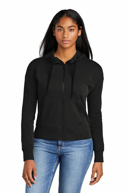 A modern twist on heritage style this hoodie is a perfect layering piece with its smooth face jacquard interior and pique-like texture.7.8-ounce 56/44 cotton/poly double knit jacquard 3-panel hoodFlat elastic drawcords with dyed-to-match plastic tipsDrop shoulderMetaluxe zipperPatch pocketEmbroidered New Era flag logo on pocket