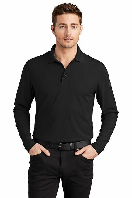 Make a statement in the reimagined Caliber2.0 now with long sleeves. 5-ounce 100% poly pique with stay-cool wicking technology OGIO heat transfer label for tag-free comfort Flat knit collar OGIO jacquard neck tape Triple-needle shoulders and hem 3-button placket with dyed-to-match OGIO buttons Set-in open hem sleeves O heat transfer on left sleeve