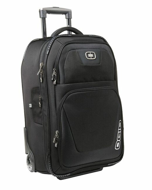 Kickstart your trip with a bag that holds all your gear and expands for even greater capacity. 1 680D poly/900D poly Locking retractable handle for optimum mobility Fully lined interior for clothes toiletries and other travel accessories Garment compression straps Large exterior zippered pockets Custom OGIO identification sleeve Strong durable grip handle on foot soft grip handles on top for easy lifting Two protective runners In-line skate wheels Dimensions: 22 h x 14 w x 10 d (expanded)Capacity: 3 076 cu. in./50.4LWeight: 8.2 lbs./3.7kgNote: Bags not intended for use by children 12 and under. Includes a California Prop65 hangtag.