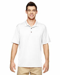 100% polyester; clean finished three-button placket with reinforced bottom box; contoured welt collar; moisture-wicking; heat transfer label ; sideseamed with side vents; joker label on sideseam; double-needle sleeve and bottom hem; Charcoal pearlized buttons;