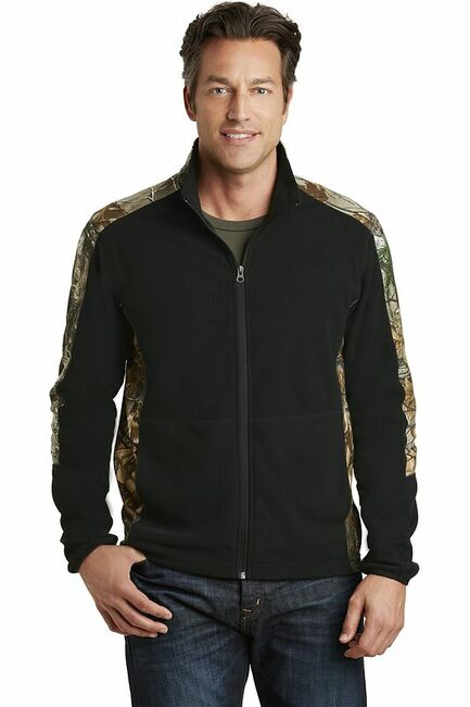 With authentic Realtree camouflage on the shoulders sleeves and sides this lightweight budget-friendly jacket is perfect for anyone who lives or loves the outdoor lifestyle. 7.5-ounce 100% polyester microfleece Reverse coil zipper Open cuffs with binding Non-zippered 100% polyester tricot front pockets Open hem