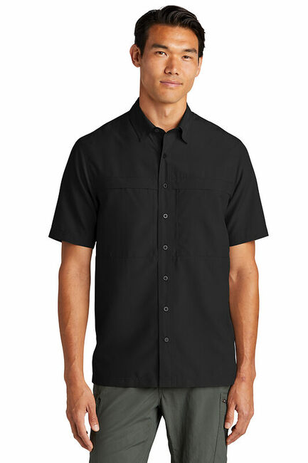 Sun and moisture are no problem for this versatile lightweight highly breathable shirt. Relaxed styling makes it perfect for outdoor or indoor wear. 2.2-ounce 100% polyester poplin 2.5-ounce 100% polyester poplin (White) Moisture-wicking UPF rating of 30 Hidden button-down collar Dyed-to-match buttons Two chest pockets with concealment flaps and hook and loop closures Vented back panel with mesh ventilation Straight hem with side vents