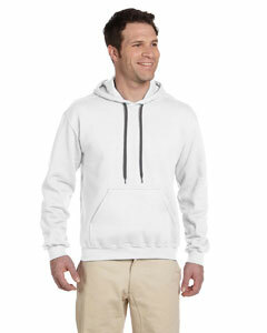 "75% cotton, 25% polyester; Sport Grey is 70% cotton, 30% polyester; premium ringspun cotton; 2"" rolled forward shoulder; contrast dark grey twill neck tape; double-needle cuffs; pouch pocket; 1x1 fashion rib with spandex;"