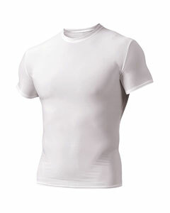 "80% polyester/20% spandex short sleeve crew, 5 oz. per square yard; Contains moisture wicking, stain release, and is odor resistant; 4-Way stretch moisture management fabric; All seams flat-lock stitched;"