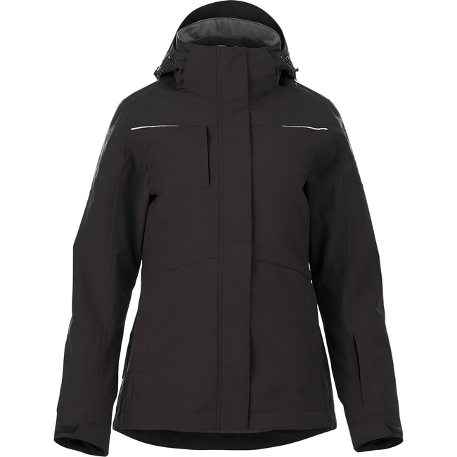 The Yamaska 3-in-1 Jacket in women's sizes will keep you ready for any weather! This fully seam-sealed outer softshell jacket is waterproof and breathable, as is its removable insulated hybrid jacket liner. The removable liner can be worn on its own or layered with the outer shell for extra warmth and protection. This high-performance jacket keeps comfort in mind. It offers extra collar padding for coziness, articulated elbows, ergonomic sleeves, and and thumb exits to keep your hands free. Added features like easy-grip zipper pulls, a detachable hood, elastic drawcords at the hem, interior media pocket and hidden pockets at the sleeve and interior make this jacket highly functional. The outer jacket has an on-trend graphic pattern and reflective elements.