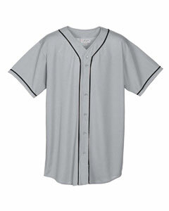 100% polyester performance wicking mesh jersey; Wicks moisture away from the body; Heat sealed label; Contrasting braid trim on front and sleeves; Set-in sleeves; Buttons spaced for easy embellishment; Double-needle stitched sleeves and fishtail bottom hem.;
