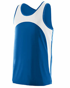 100% polyester wicking knit ; Moisture wicking; Heat Sealed label ; Self-fabric binding at neck and armholes; Contrast color front inserts;